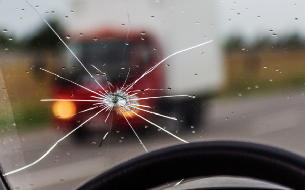 на склі з'явилася велика тріщина в результаті попадання каменю, який вилетів з-під коліс транспортного засобу, що їхав попереду, або зустрічного;